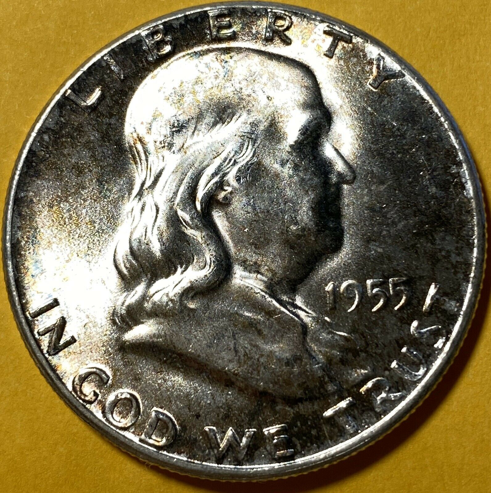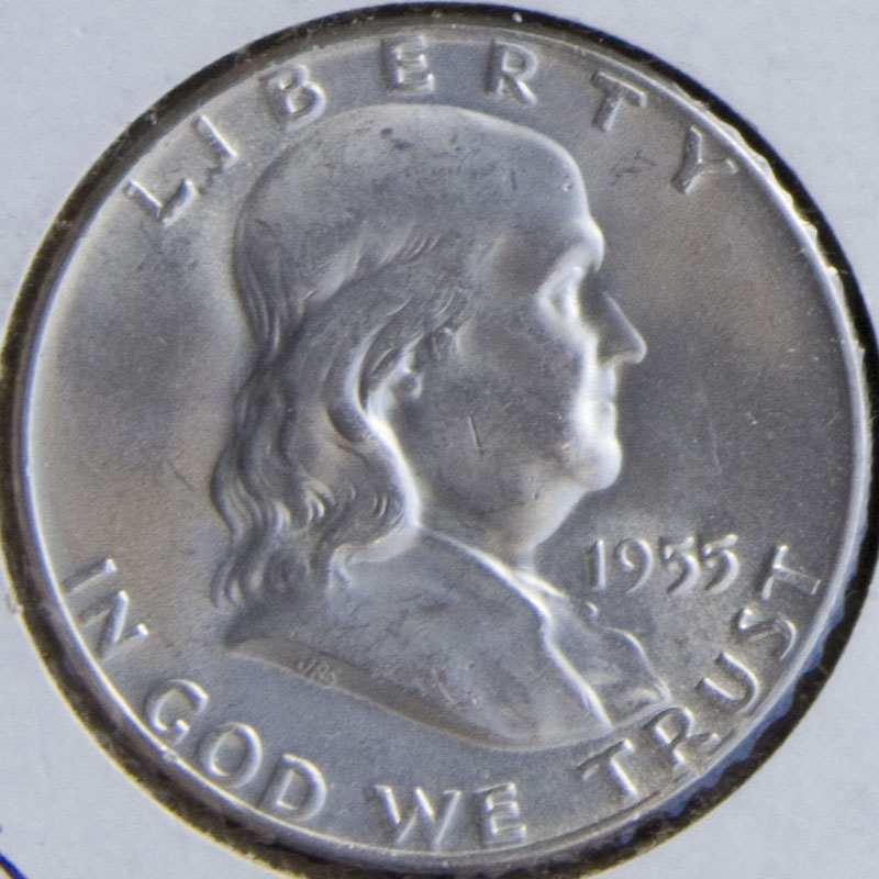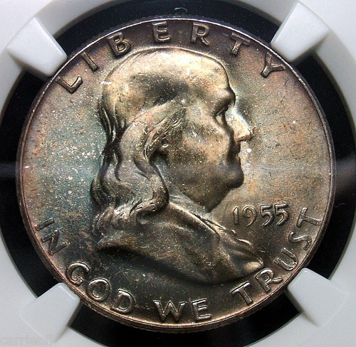 1955-P Franklin Half Dollar, Gem BU! Great Toning obv 16.jpg