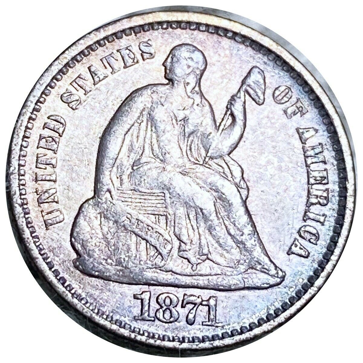 1871 Seated Liberty Silver Half Dime, Rare Toning 5c Sharp Detail Coina.jpg