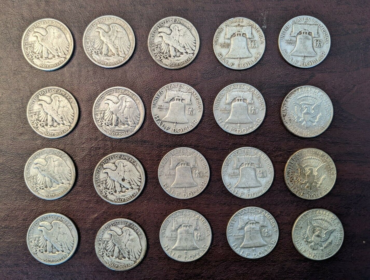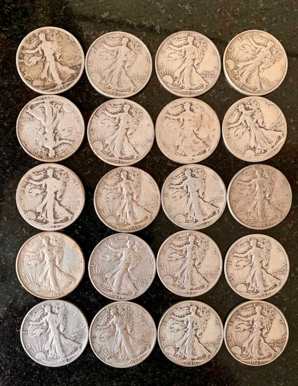 Lot of 20 Coins Walking Liberty Half Dollar 90% Silvera.jpg